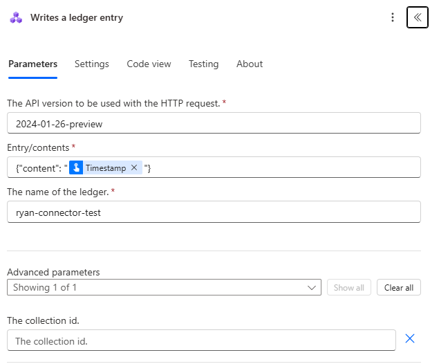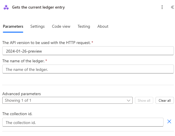 outputs('Create_Ledger_Entry')['headers']['x-ms-ccf-transaction-id']to get the transaction ID.