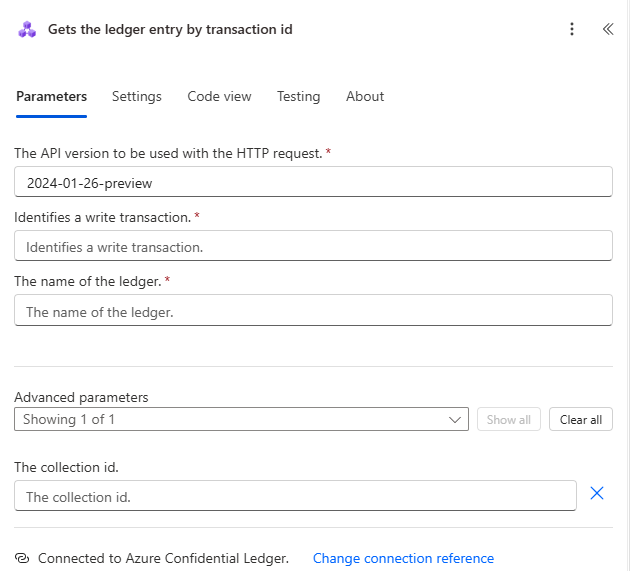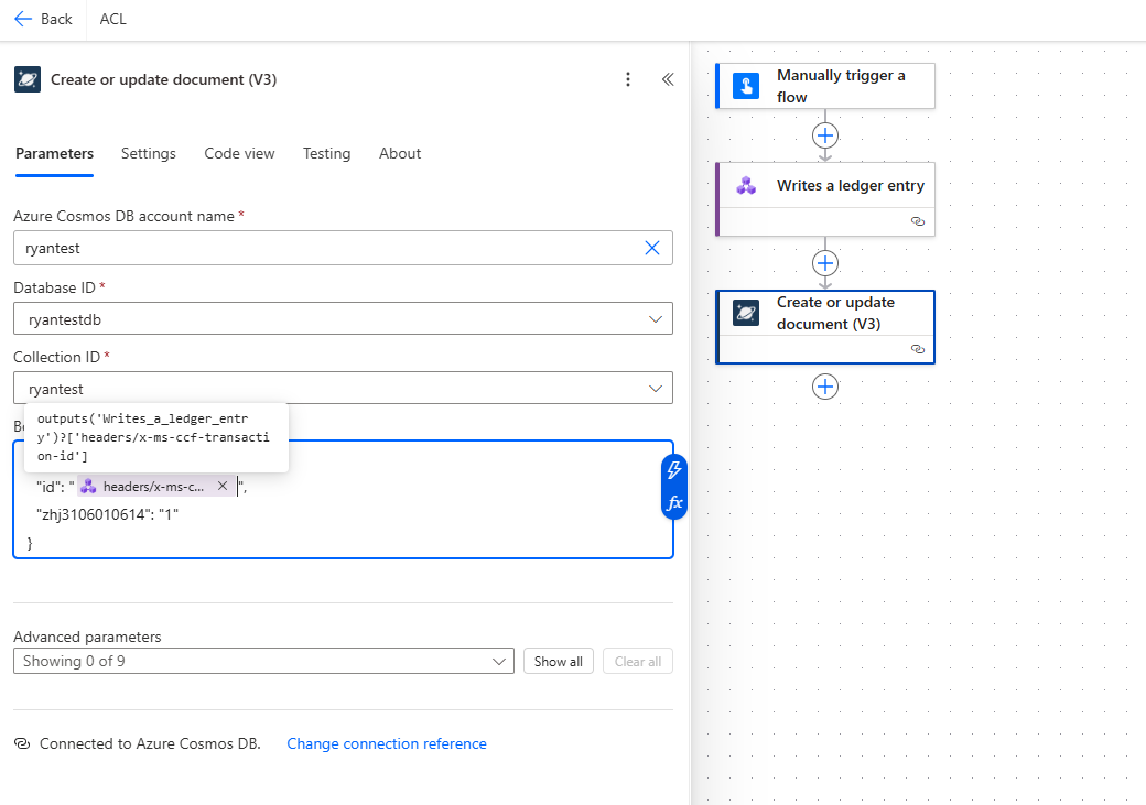 A Power Automate connector is now available for interacting with Azure confidential ledger. This article explains how to build a workflow that adds an entry into a confidential ledger instance and saves the transaction ID in Azure Cosmos DB.
