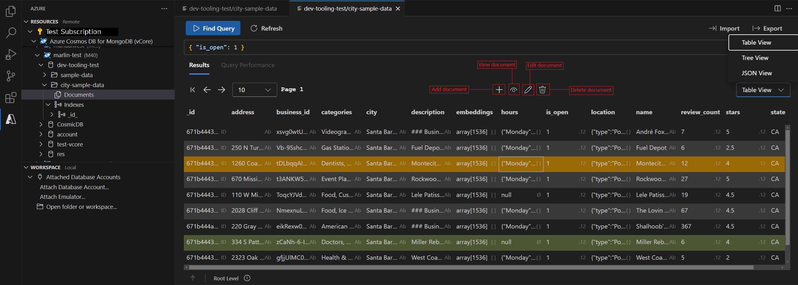 Create and Drop Databases/Collections: Create or delete databases and collections using the context menu on your account, database, or collection in the resource panel.