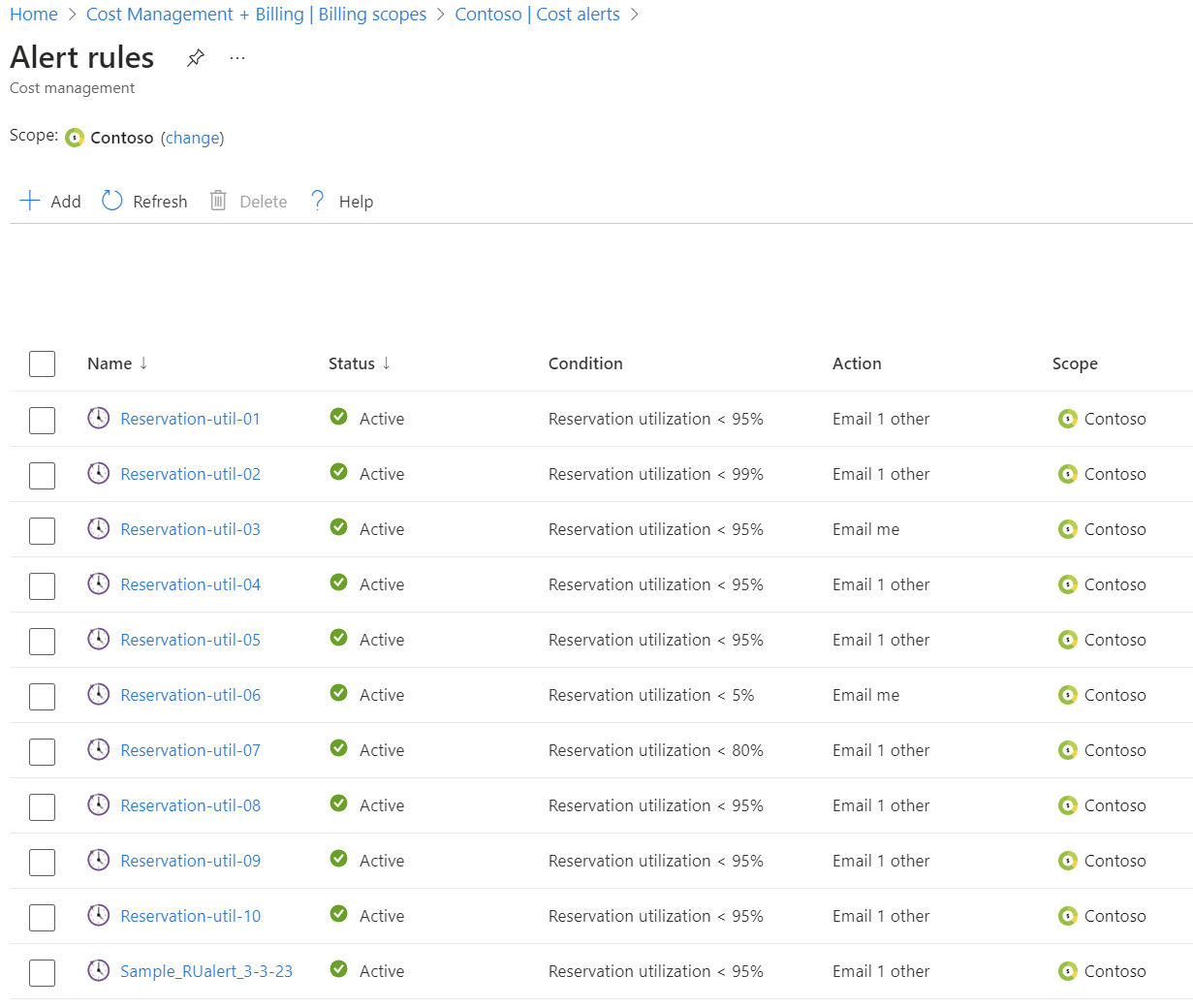 You can create a reservation utilization alert rule at any of the following scopes provided you have adequate permissions. For example, if you're an enterprise admin within an enterprise agreement, the alert rule should be created at the enrollment scope. It's important to note that this alert monitors all reservations available within the enrollment, regardless of their benefit scope. Scopes include single resource group, single subscription, management group, or shared.