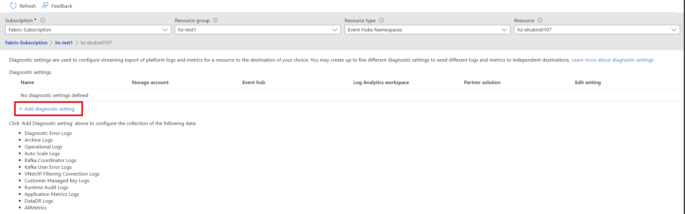 Select Add diagnostic setting.