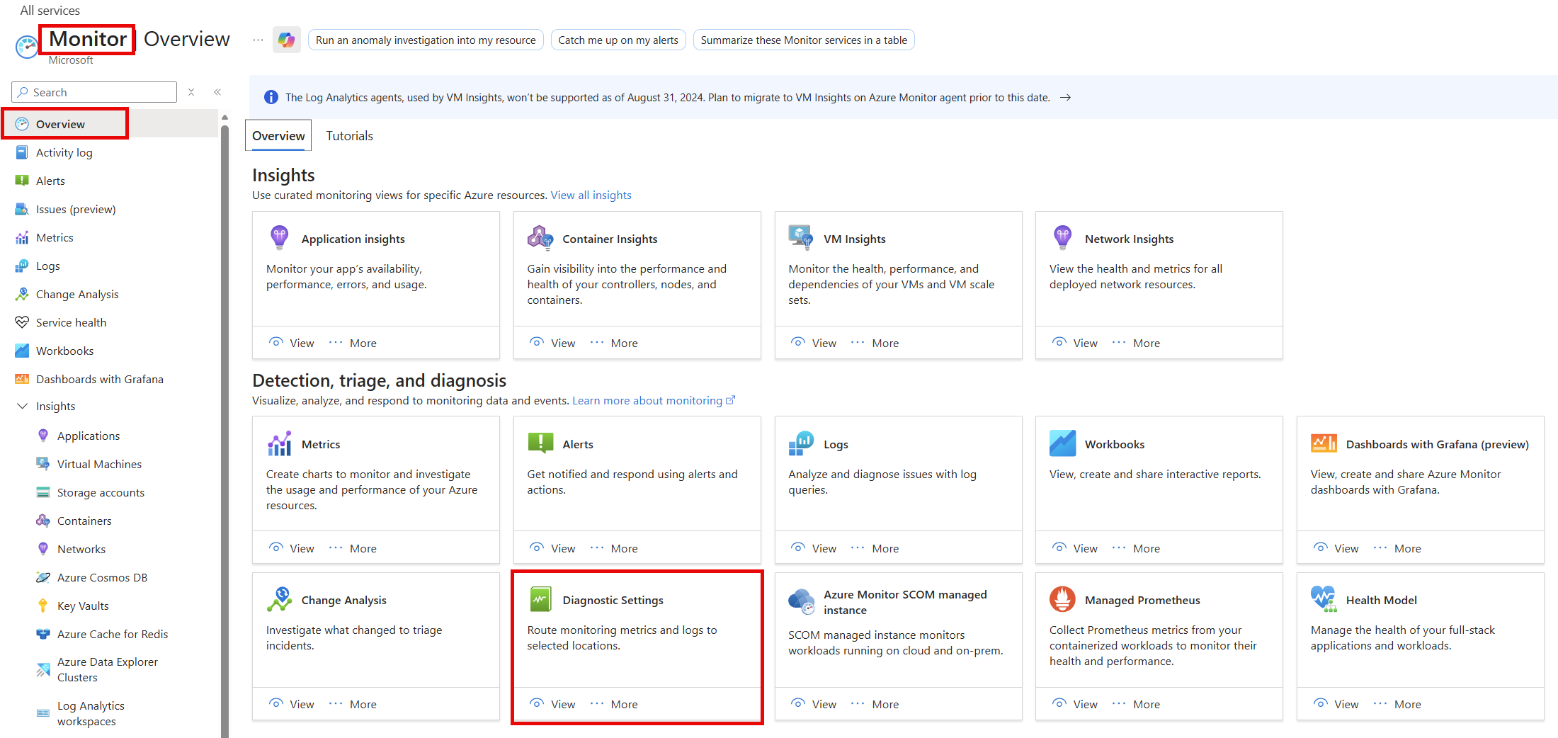 Under Monitoring, select Diagnostic settings.