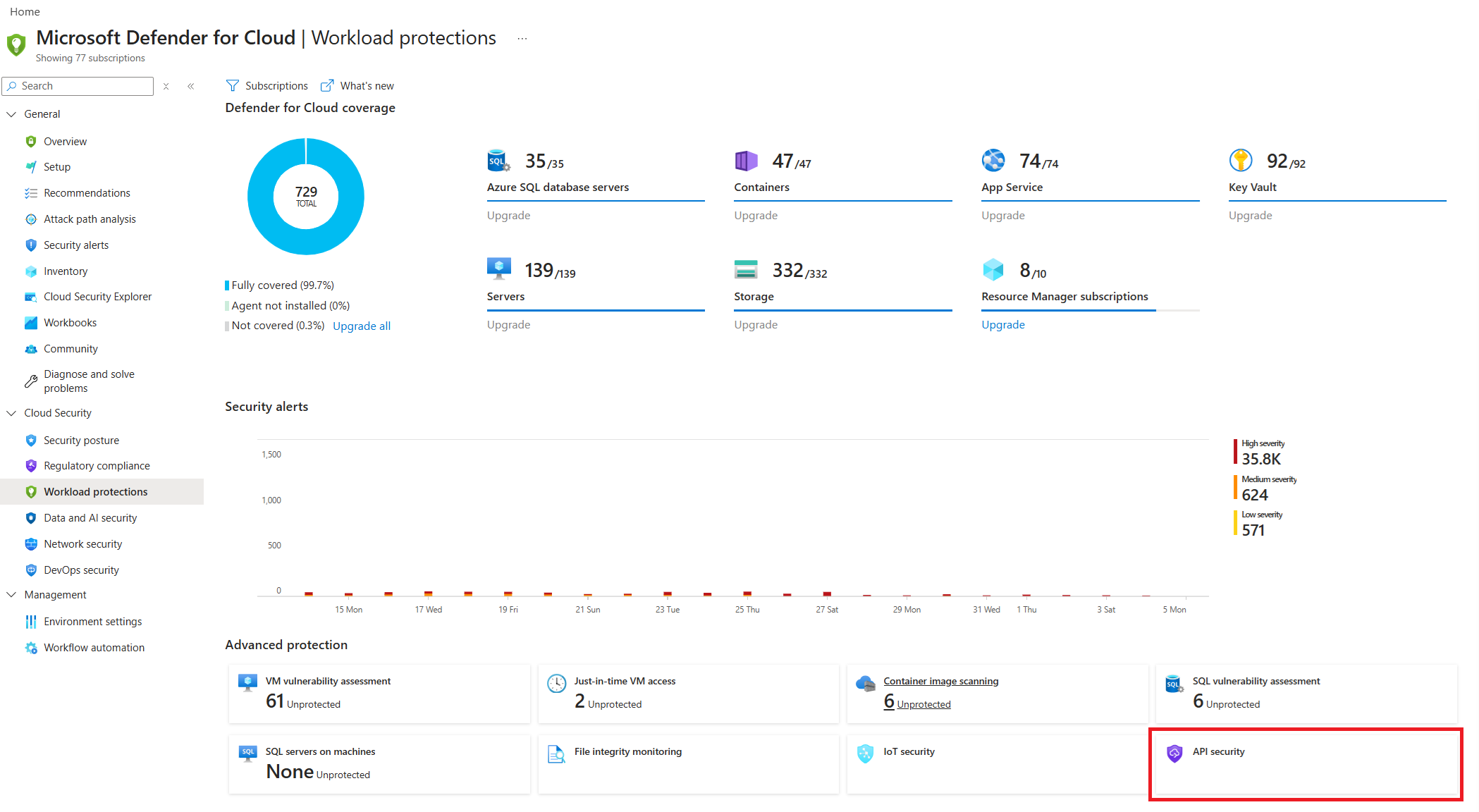 - Monitor for API threats by using Defender for APIs Workload Protection.