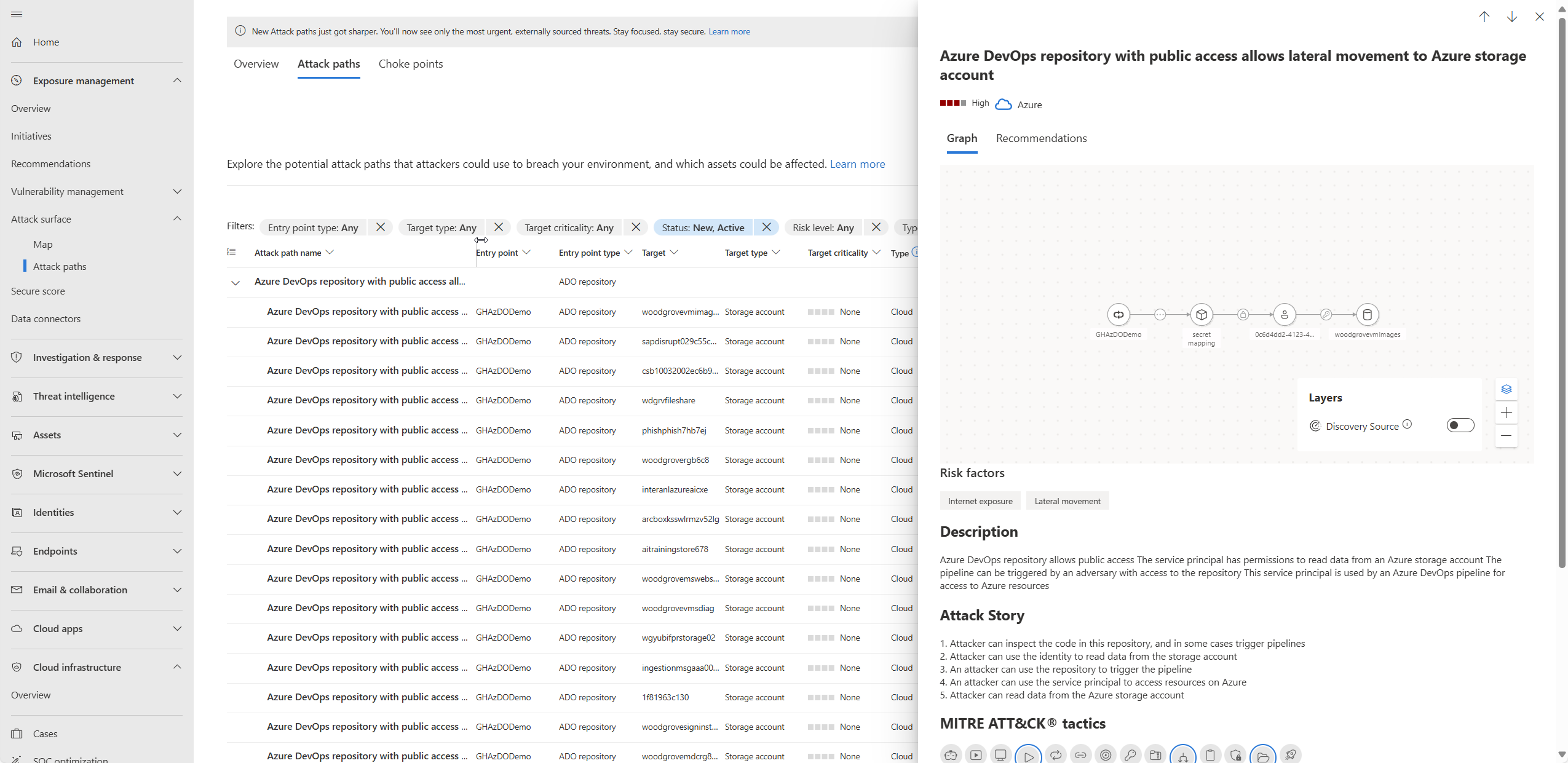 Navigate to Exposure Management > Attack surface > Attack paths. You will see an overview of your attack paths.