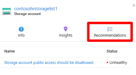 Select Recommendations to see actionable guidance with remediation status tracking.