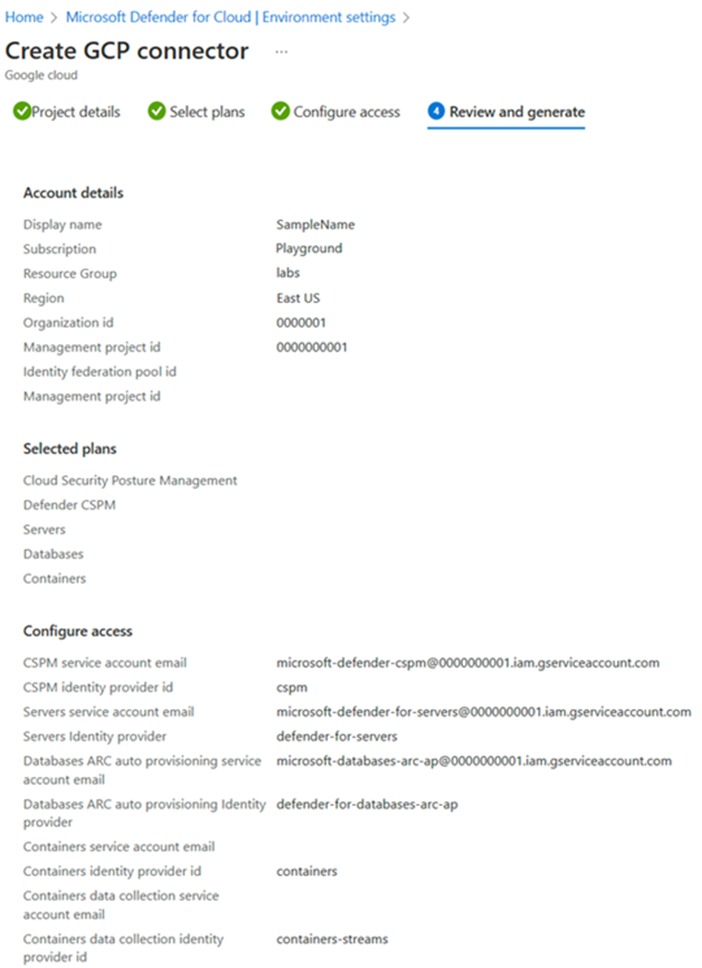 The GCloud script creates all of the required resources on your GCP environment so that Defender for Cloud can operate and provide the following security values: