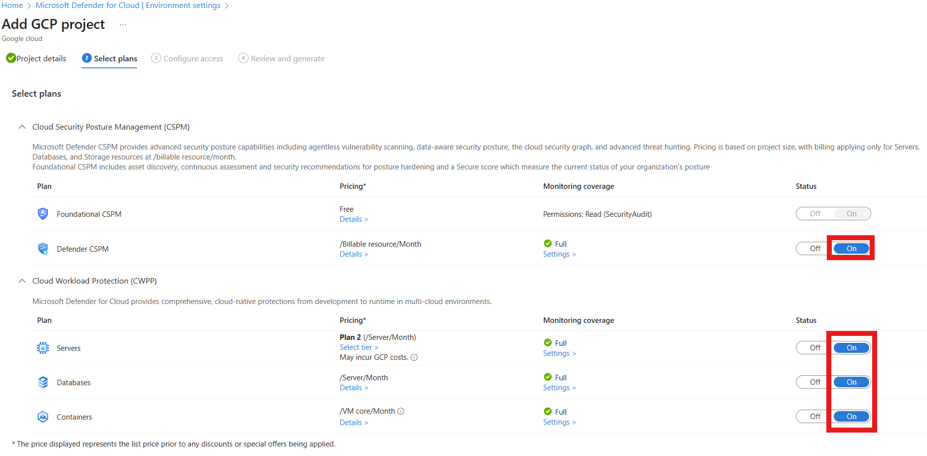Connecting GCP projects to Microsoft Defender for Cloud and enabling Defender plans can incur additional charges.