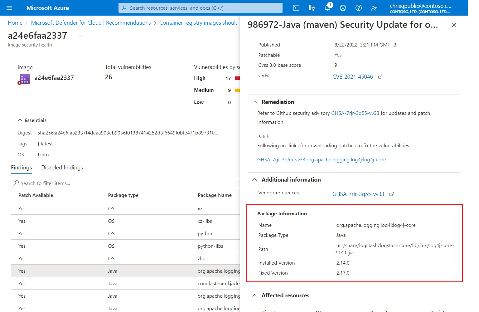 The scan itself is automatically triggered when pushing new container images to Azure Container Registry. Found vulnerabilities will surface as Security Center recommendations and included in the secure score together with information on how to patch them to reduce the attack surface they allowed.
