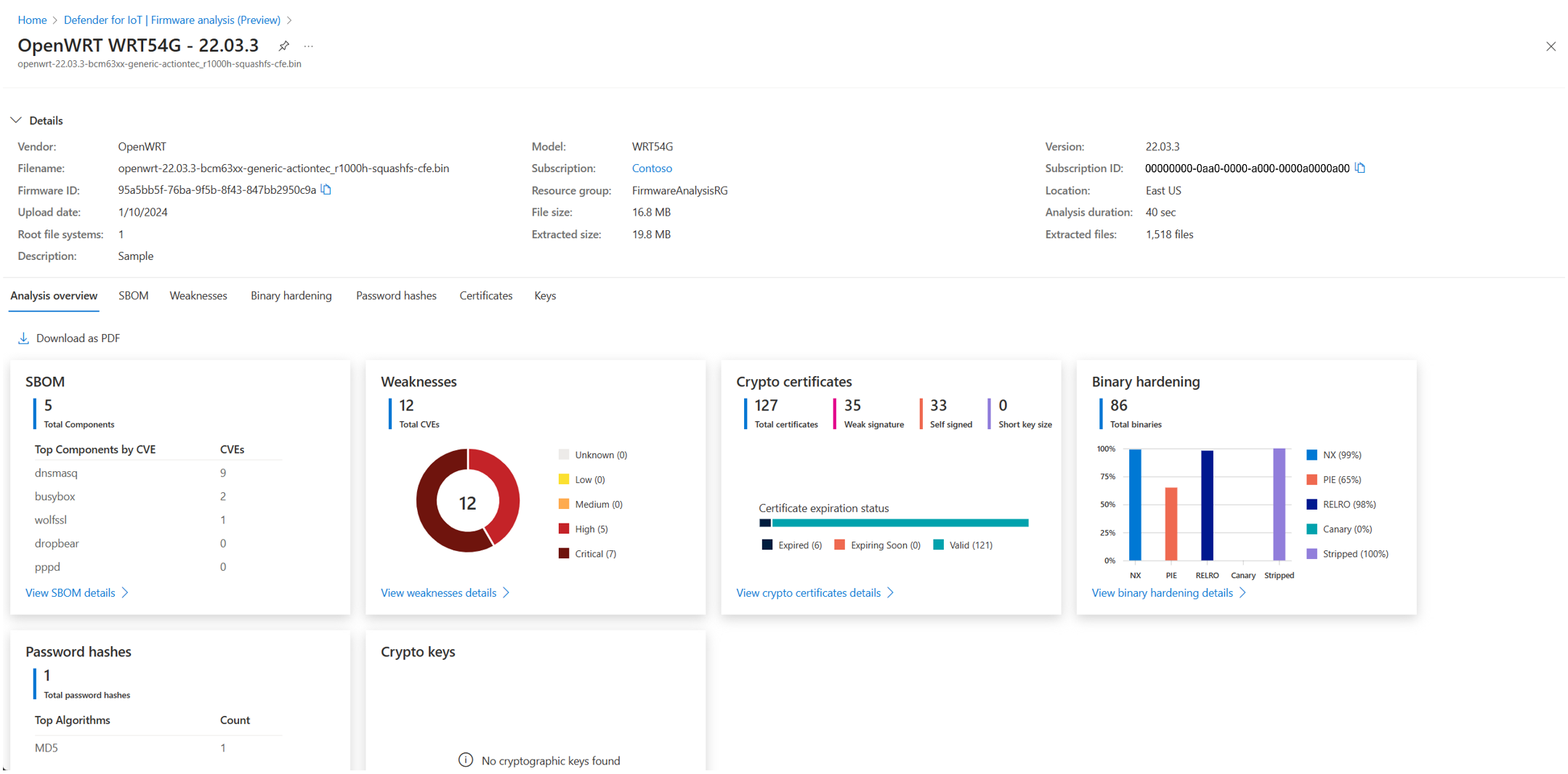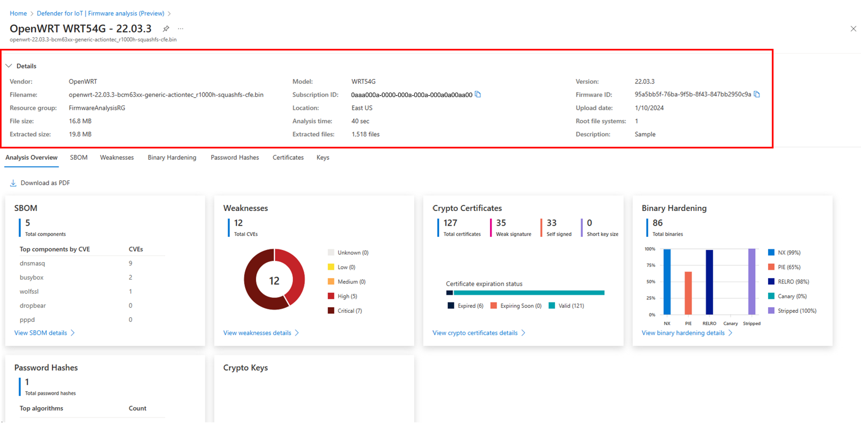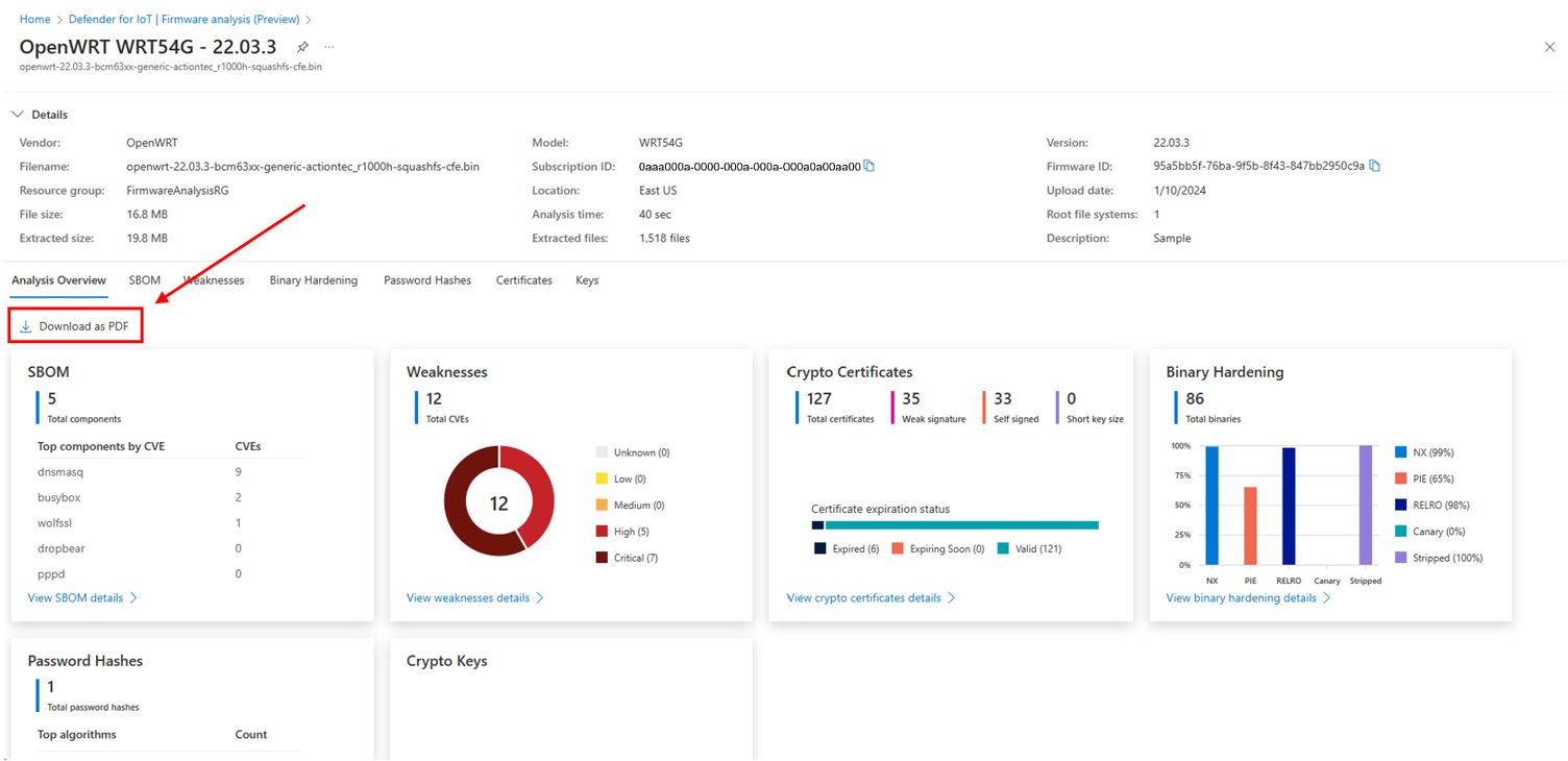 For more information, see Firmware analysis for device builders.