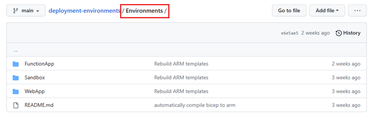 Azure Deployment Environments supports attaching Azure Repos repositories and GitHub repositories. You can store a set of curated IaC templates in a repository. Attaching the repository to a dev center or project as a catalog gives your development teams access to the templates and enables them to quickly create consistent environments.