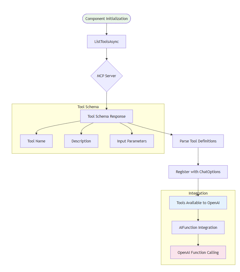 - LLM Analysis: Azure OpenAI analyzes the request and decides which tools to use