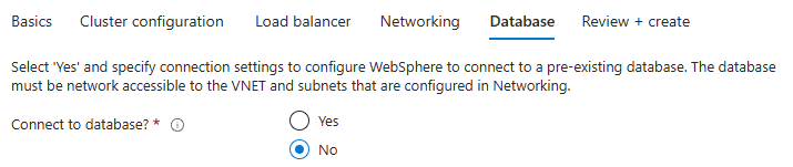 Alternatively, you can select Yes and provide the necessary details to connect to your database. For more information about connecting to a database, see Tutorial: Migrate WebSphere Application Server to Azure Virtual Machines with high availability and disaster recovery.
