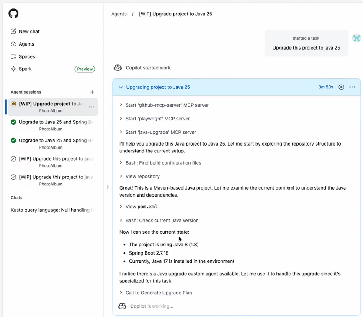 This article provides an overview of how Java developers can modernize their applications using GitHub Copilot modernization within the Copilot coding agent. The agent can work independently in the background to complete modernization tasks, just like a human developer. Developers can delegate tasks via issues or pull requests, and the agent executes them in the cloud, helping teams complete the entire modernization journey efficiently.