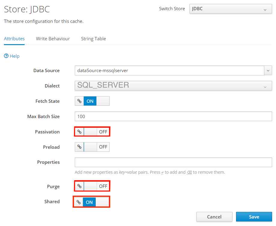 CREATE TABLE ispn_entry_sessions_javaee_cafe_war ( id VARCHAR(255) PRIMARY KEY, -- ID Column to hold cache entry ids data VARBINARY(MAX), -- Data Column to hold cache entry data timestamp BIGINT, -- Timestamp Column to hold cache entry timestamps segment INT );After a successful run, you should see the message Query succeeded: Affected rows: 0.