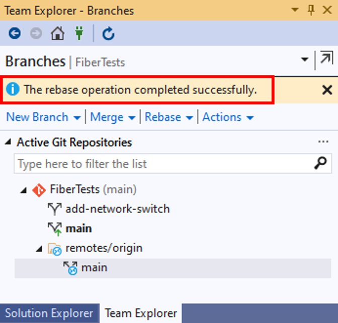 Visual Studio will display a confirmation message after a successful rebase.