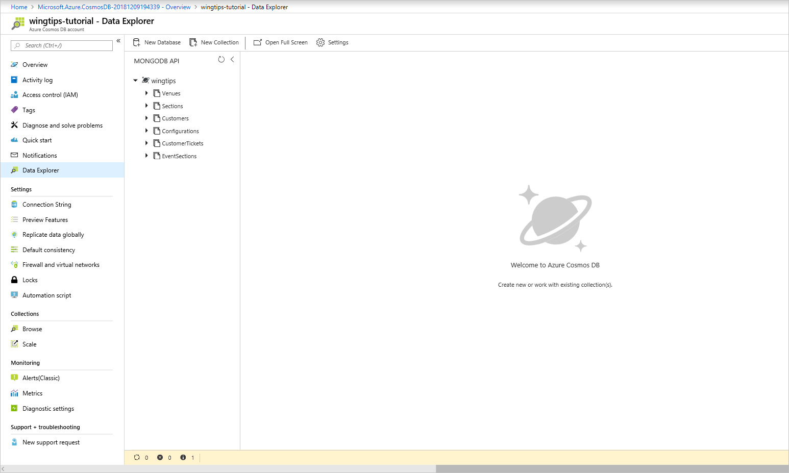 After the migration finishes, you can check your Azure Cosmos DB account to verify that all the collections were migrated successfully.