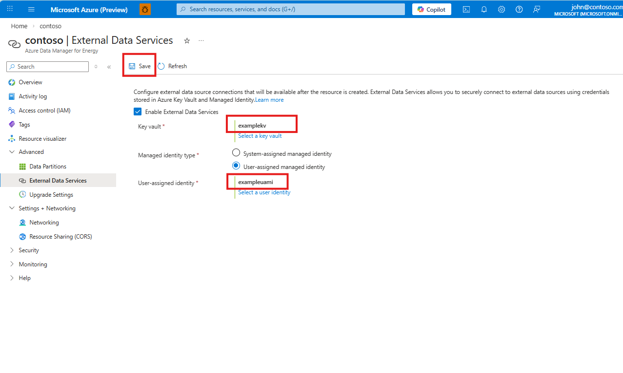 Use the following steps to enable External Data Services in your Azure Data Manager for Energy resource.