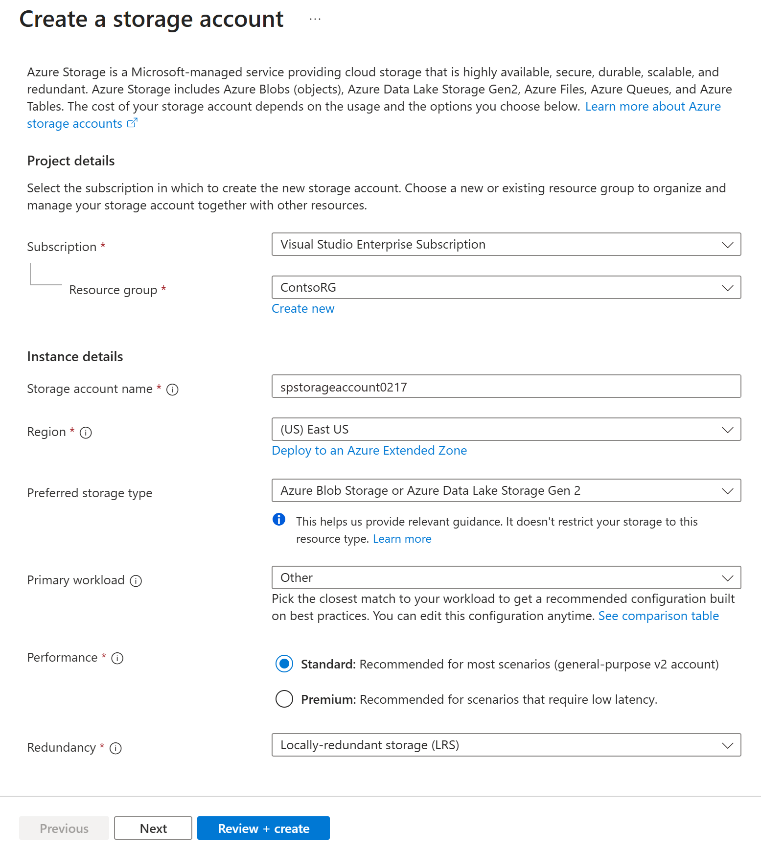 For Redundancy, select Locally-redundant storage (LRS) from the drop-down list.