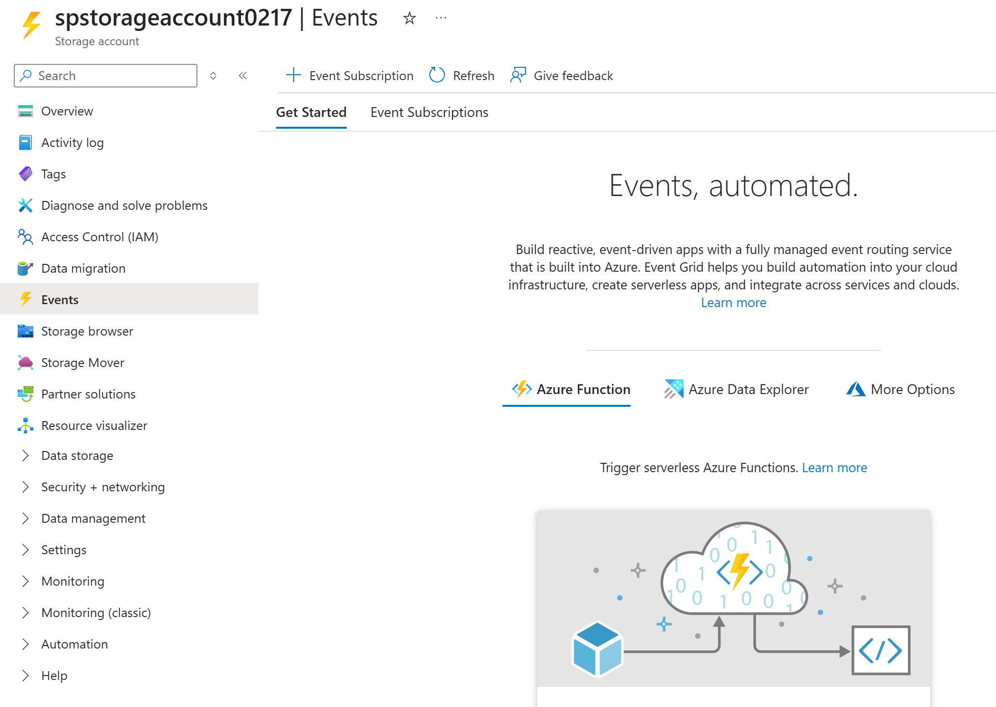 Only storage accounts of kind StorageV2 (general purpose v2) and BlobStorage support event integration. Storage (general purpose v1) doesn't support integration with Event Grid.