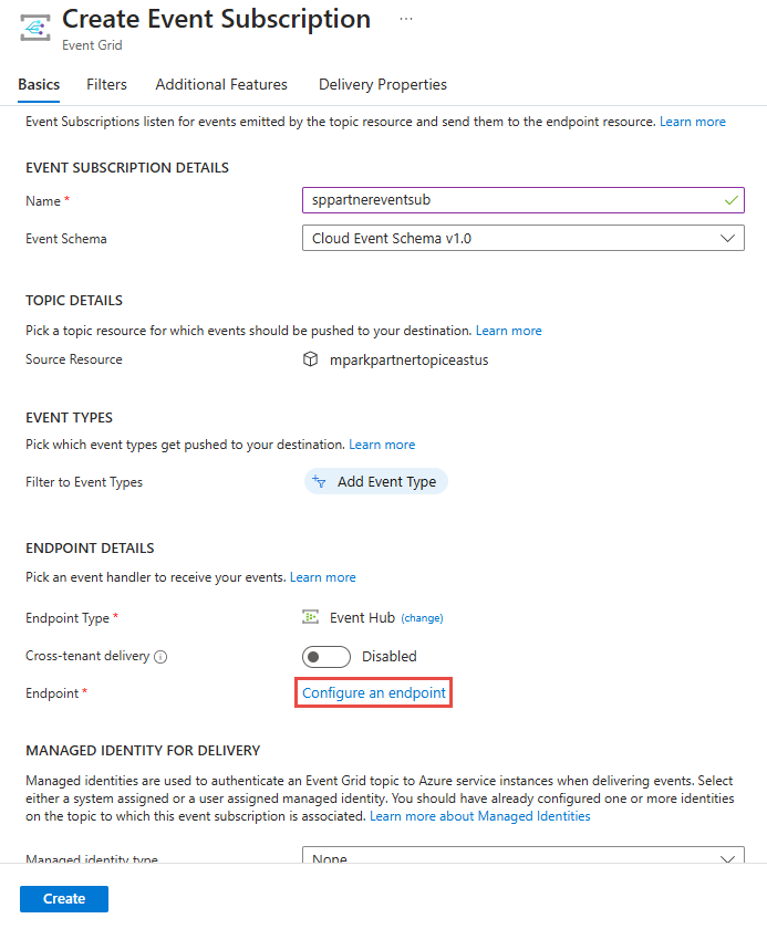 Now on the Create Event Subscription page, select Create.