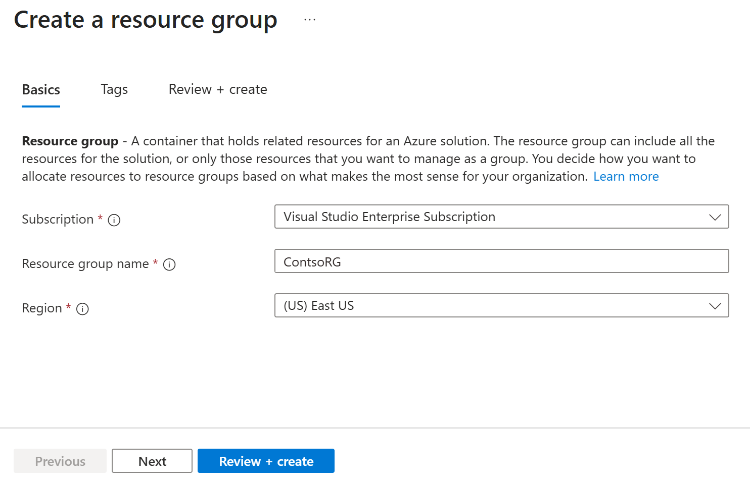 A resource group is a logical collection of Azure resources. All resources are deployed and managed in a resource group. To create a resource group: