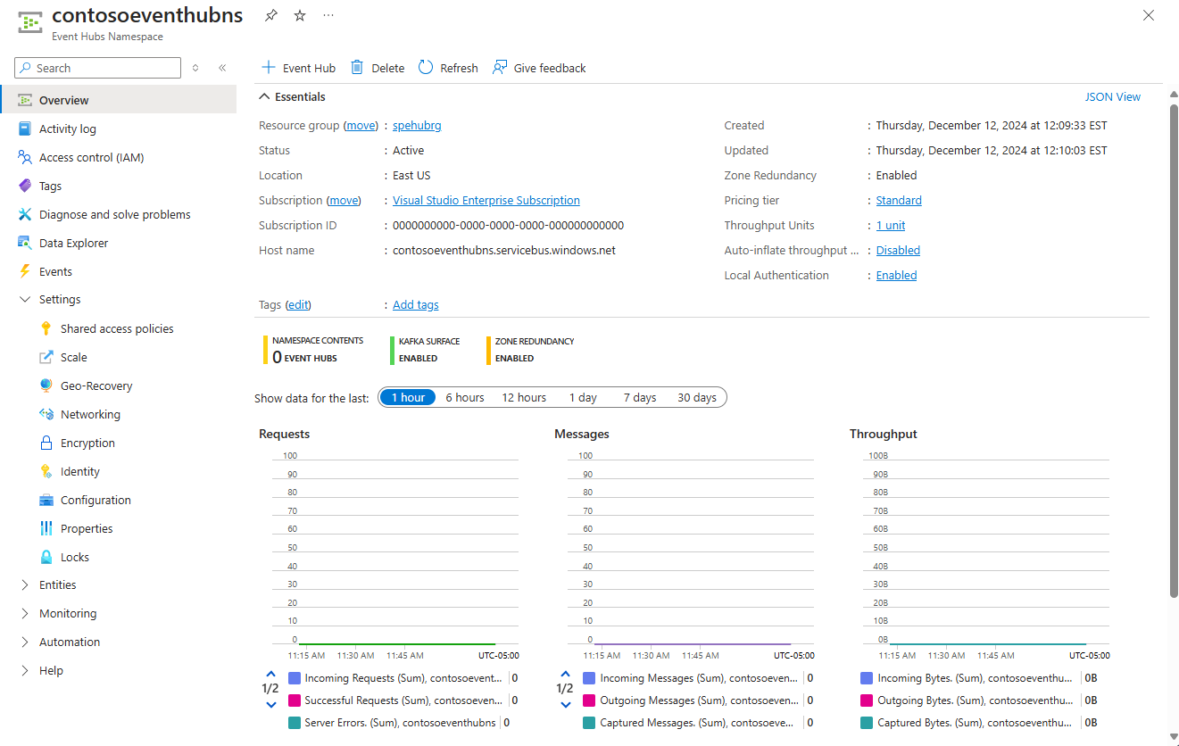 Confirm that you see the Event Hubs namespace page similar to the following example: