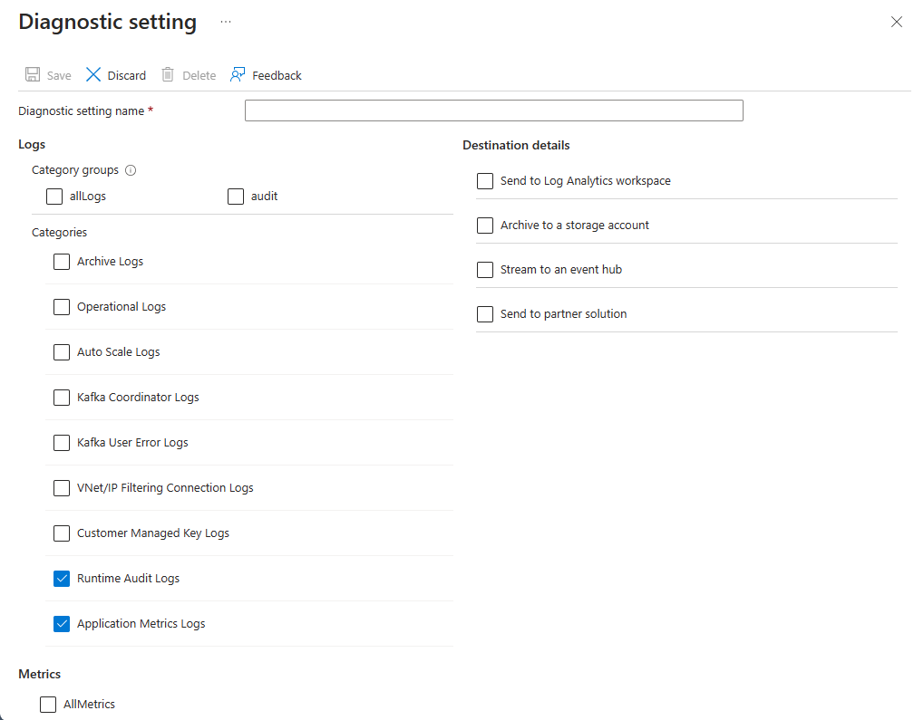 - For more information, see the Metrics diagnostic setting.