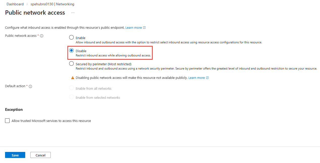 On the Public network access page, select Save at the bottom of the page.