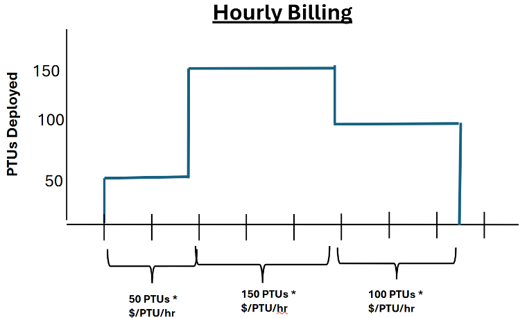 Paying for regional provisioned, data zone provisioned, and global provisioned deployments on an hourly basis is ideal for short-term deployment scenarios. For example: Quality and performance benchmarking of new models, or temporarily increasing PTU capacity to cover an event such as a hackathon.