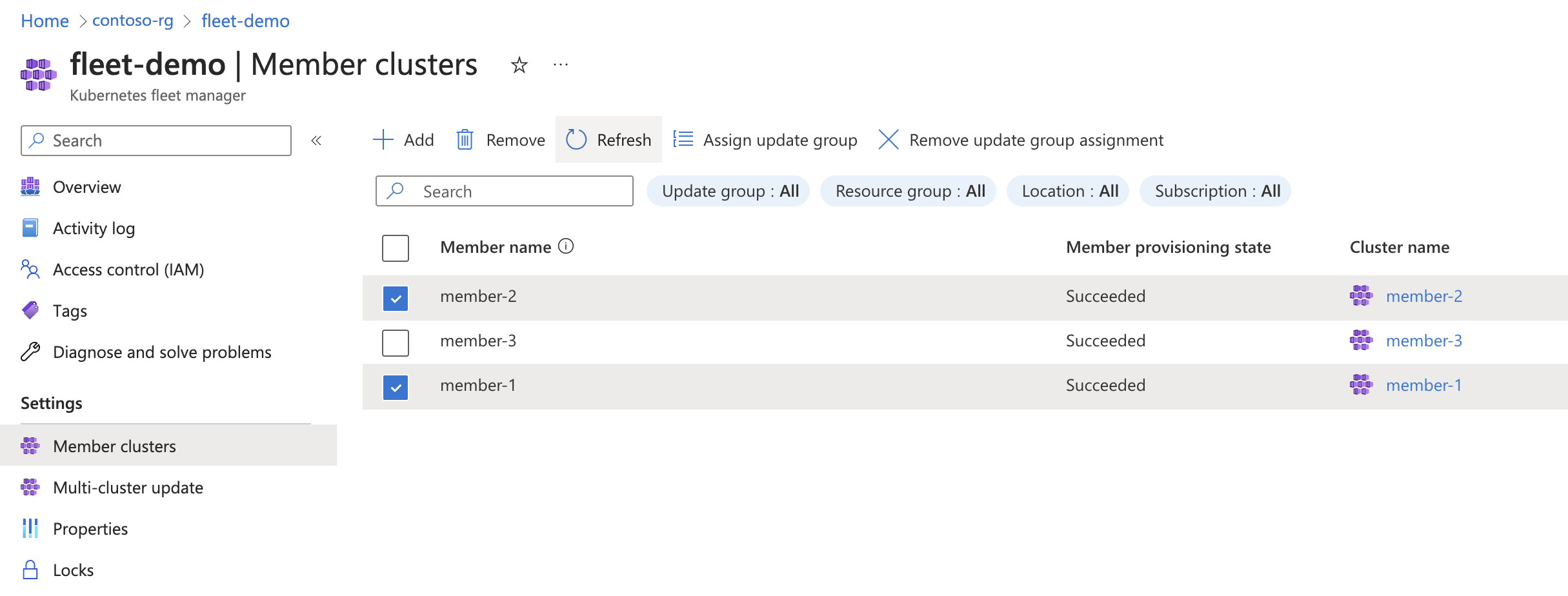 In the Azure portal, navigate to your Azure Kubernetes Fleet Manager resource.