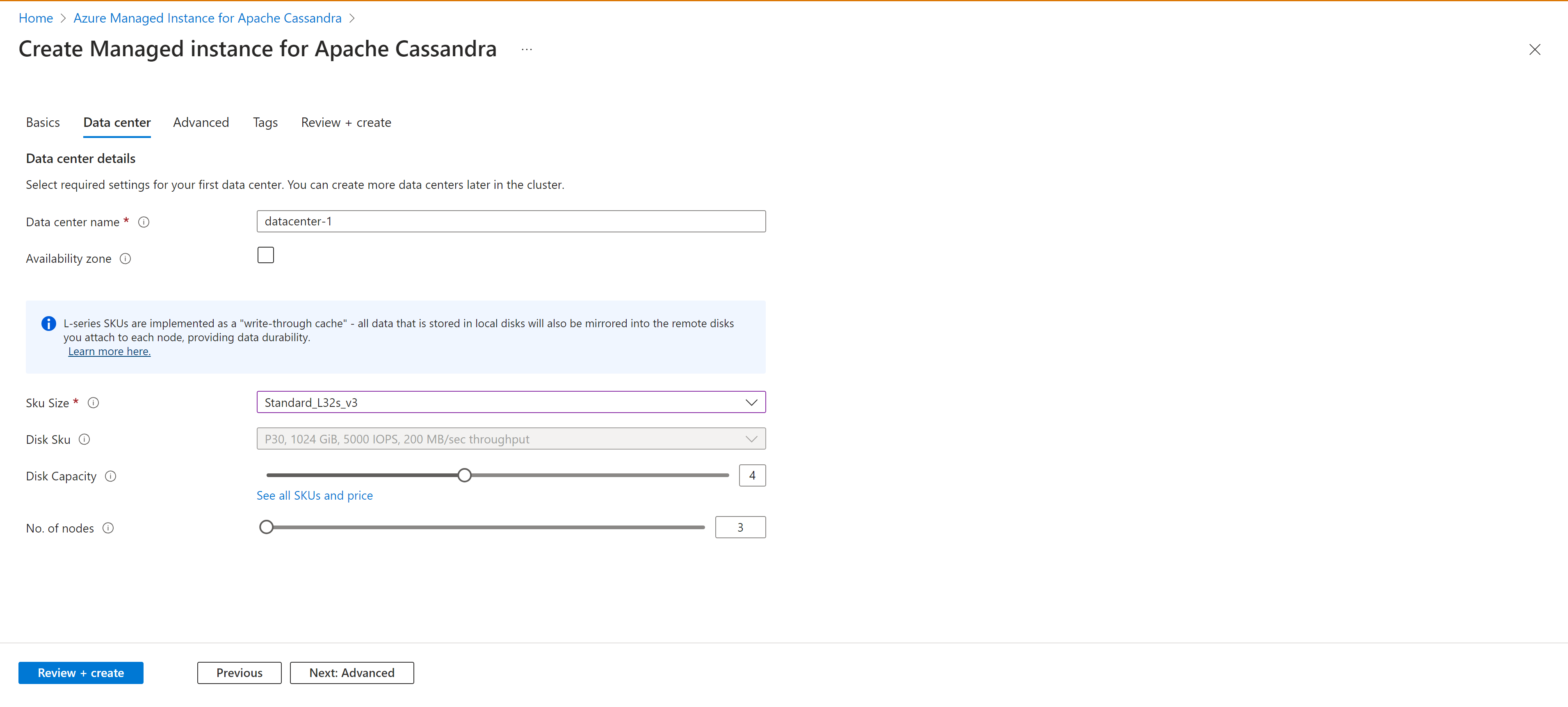 • No. of nodes: Choose the number of Cassandra nodes to deploy to this datacenter.