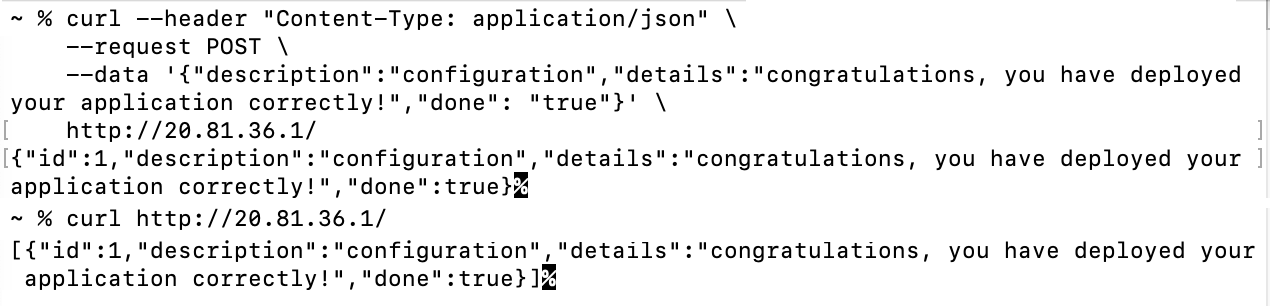 --data '{"description":"configuration","details":"congratulations, you have deployed your application correctly!","done": "true"}' \