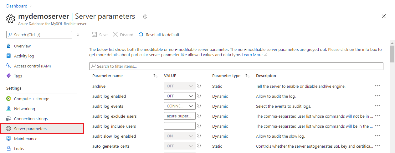 To ensure that your Azure Database for MySQL Flexible Server instance's performance isn't heavily affected, we recommend that you log only the event types and users that are required for your auditing purposes.