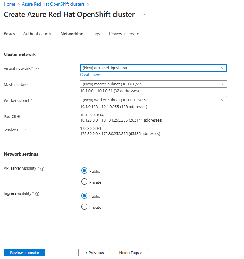 For information about networking and requirements, see Networking for Azure Red Hat OpenShift.