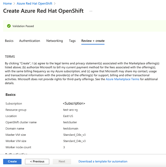 Create an Azure Red Hat OpenShift cluster