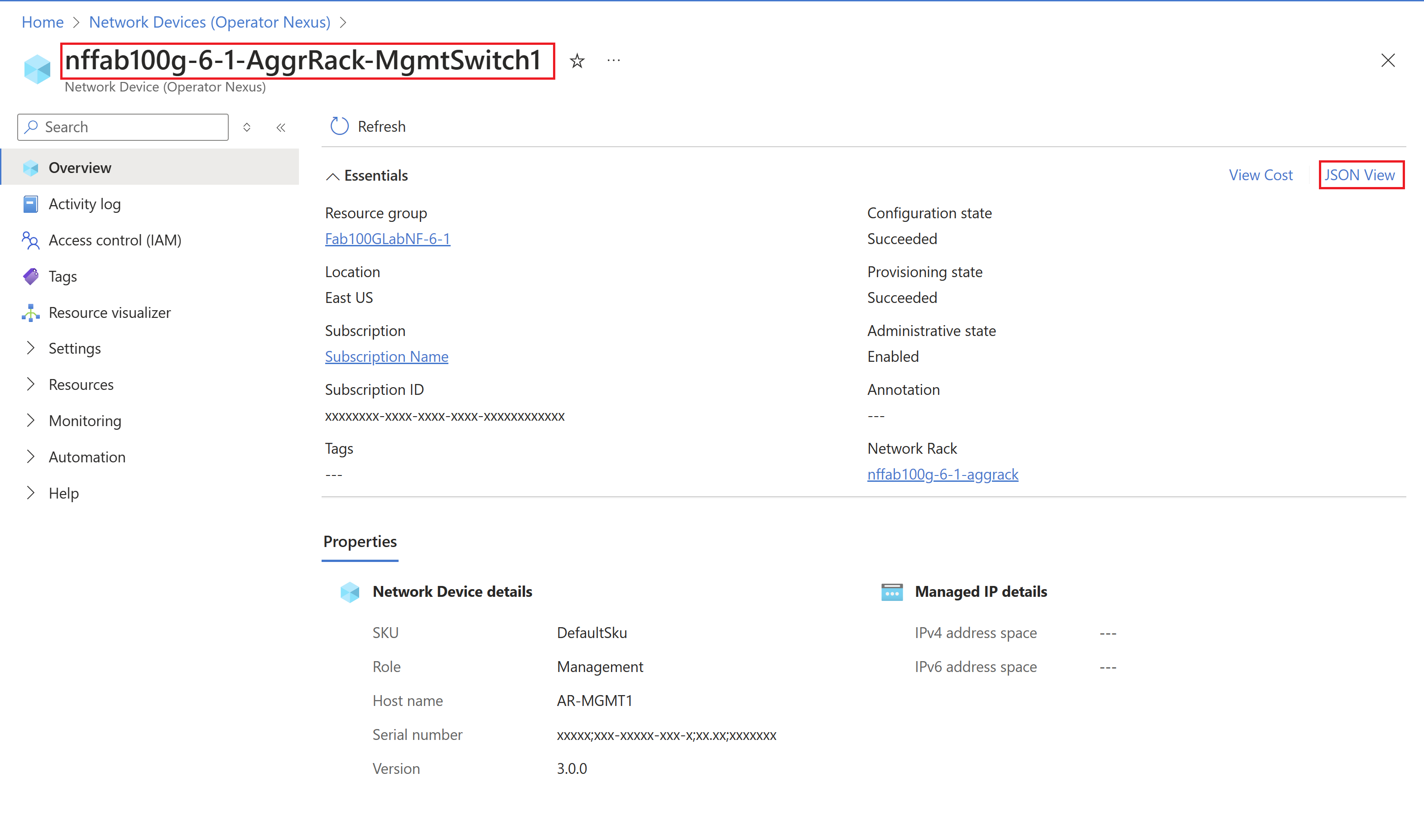 Take note of the resource name and the resource group of this network device, as you will need these for the CLI command.