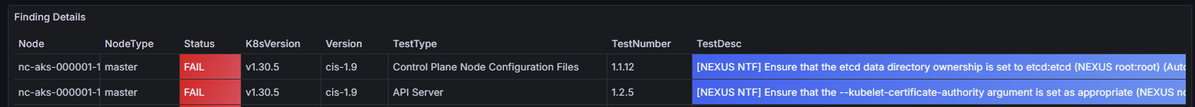 The Operator Nexus Cluster Manager is an AKS implementation. The following image shows the Kube-Bench exceptions for the Cluster Manager. A full report of CIS Benchmark control evaluation for Azure Kubernetes Service (AKS) can be found here