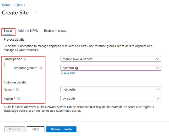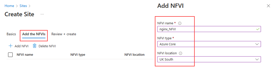 | NFVI Location | The Azure region for the site. |