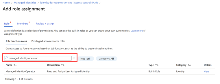 Choose Add Role Assignment and select the Managed Identity Operator role.