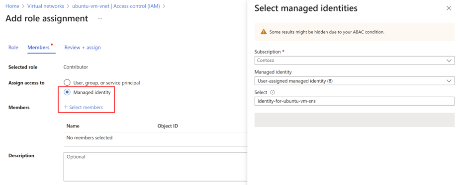 Select Managed Identity, then Choose + Select Members then find and choose your new managed identity. Choose Select.