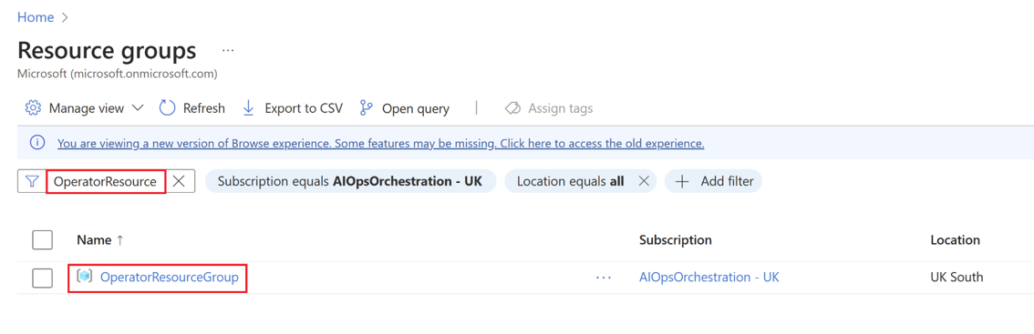 Navigate to the Azure portal and search for Resource Group in which the Configuration Group Value was deployed.