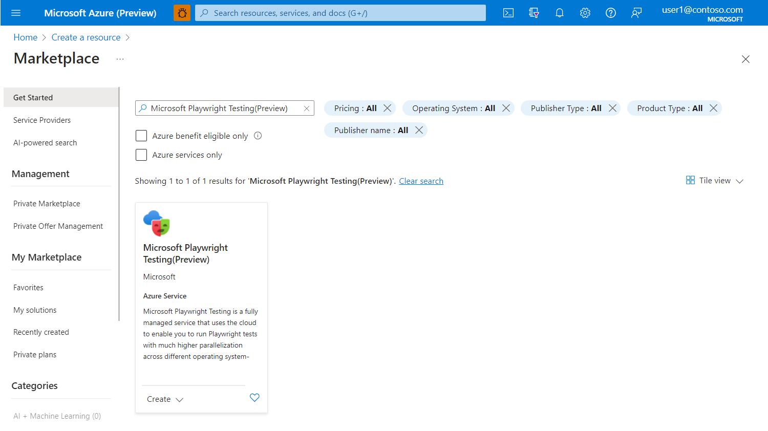 | Create a workspace | Yes | Yes | Quickstart: run Playwright test in the cloud |