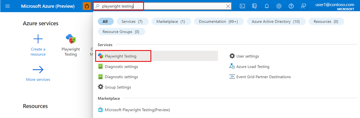 When you create a workspace in the Playwright portal, the service creates a new resource group and a Microsoft Playwright Testing Azure resource in your Azure subscription. The name of the new resource group is based on the workspace name.