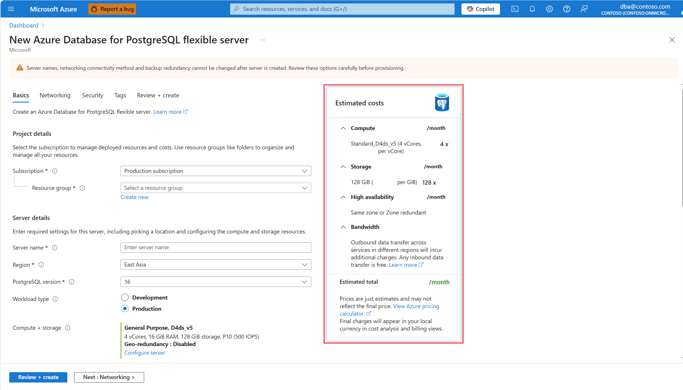 That estimation can be seen throughout the server creation experience, in the New Azure Database for PostgreSQL Flexible server page: