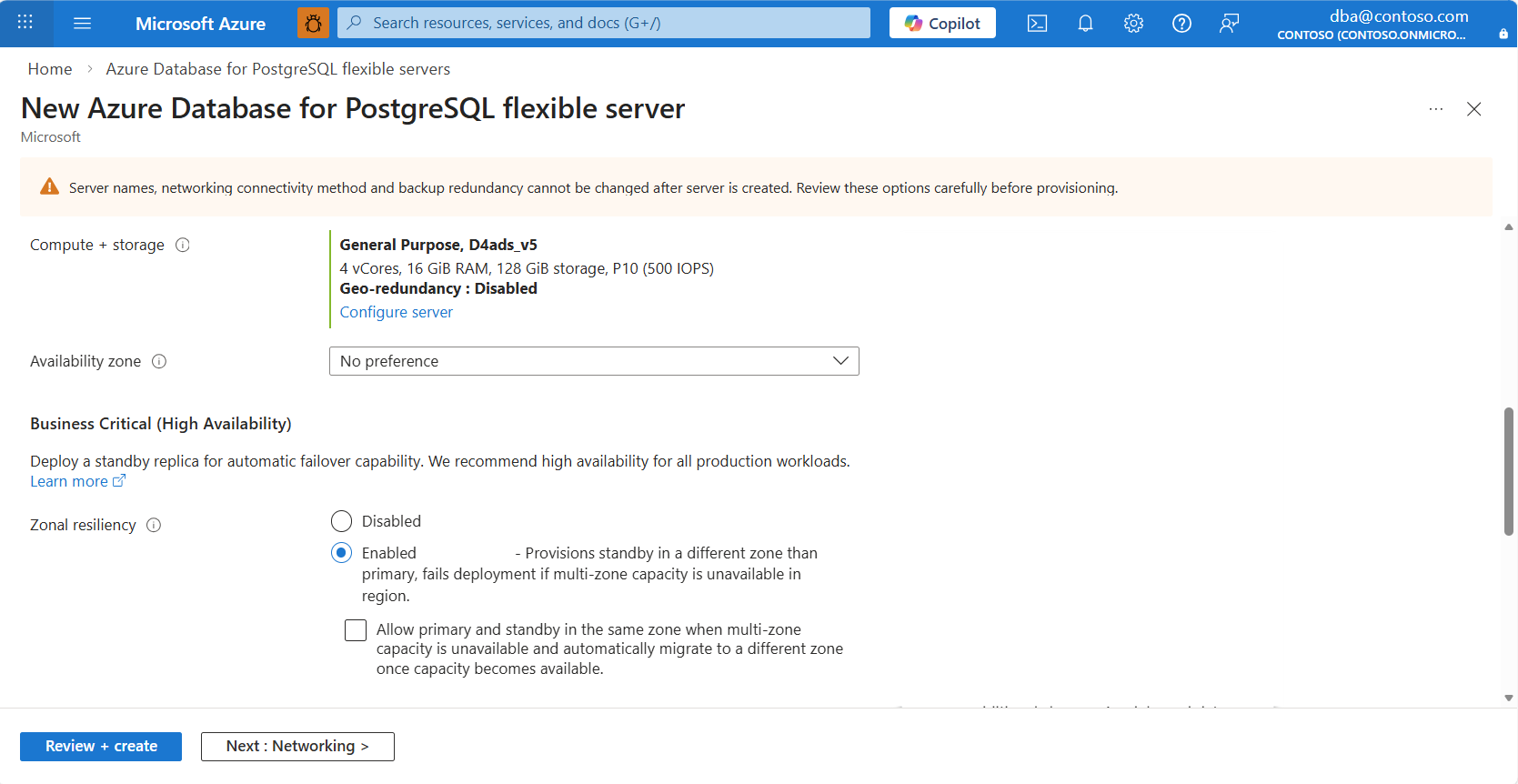 Create an Azure Database for PostgreSQL with availability zone enabled