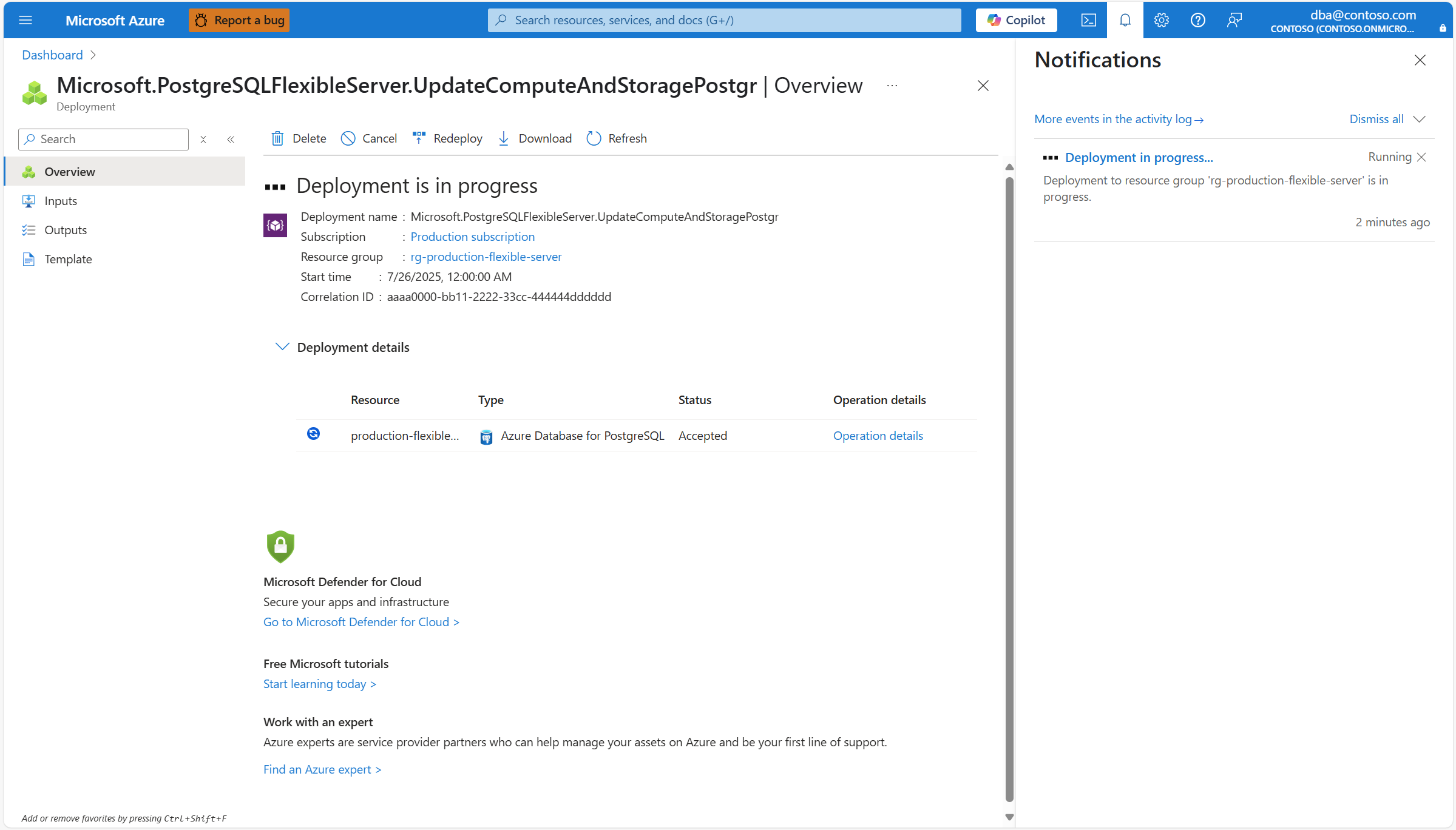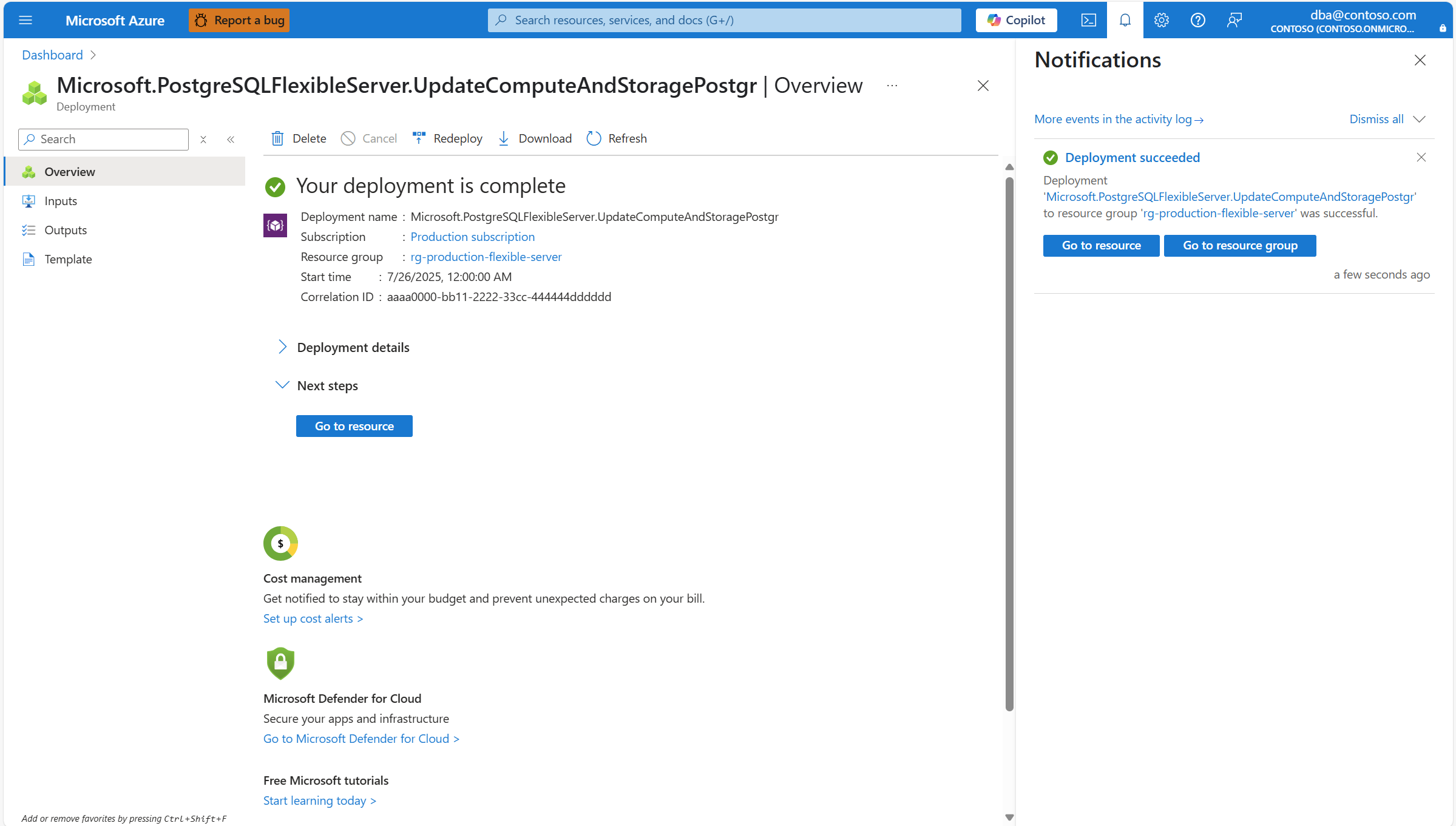 2. When the scale process completes, a notification shows that the deployment succeeded.