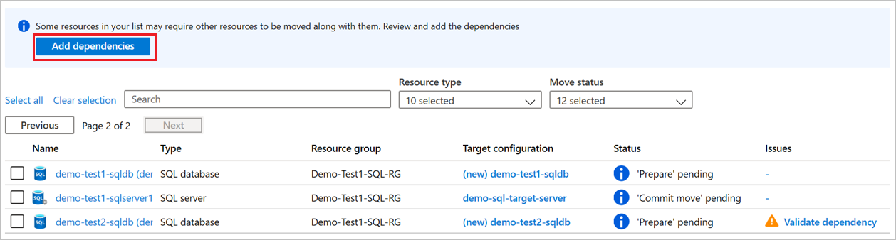 In Across regions, select resources with state Initiate move pending. Then select Initiate move.