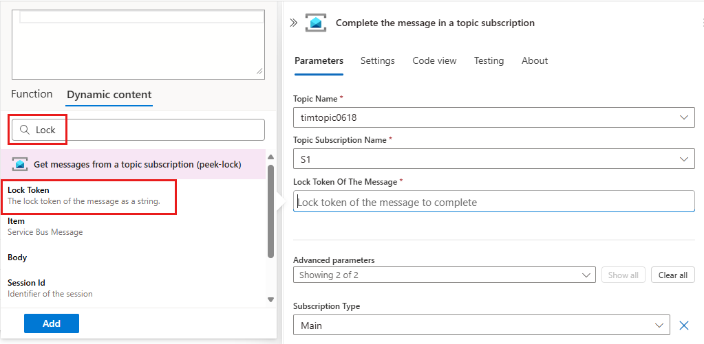 Select See more and then select Get messages from a topic subscription (peek-lock).