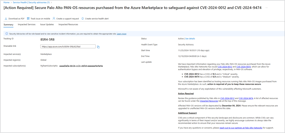 - Users assigned Tenant Administrator roles can view tenant‑level sensitive Security Advisory details in the Summary and Issue Updates tabs when advisories contain sensitive information.