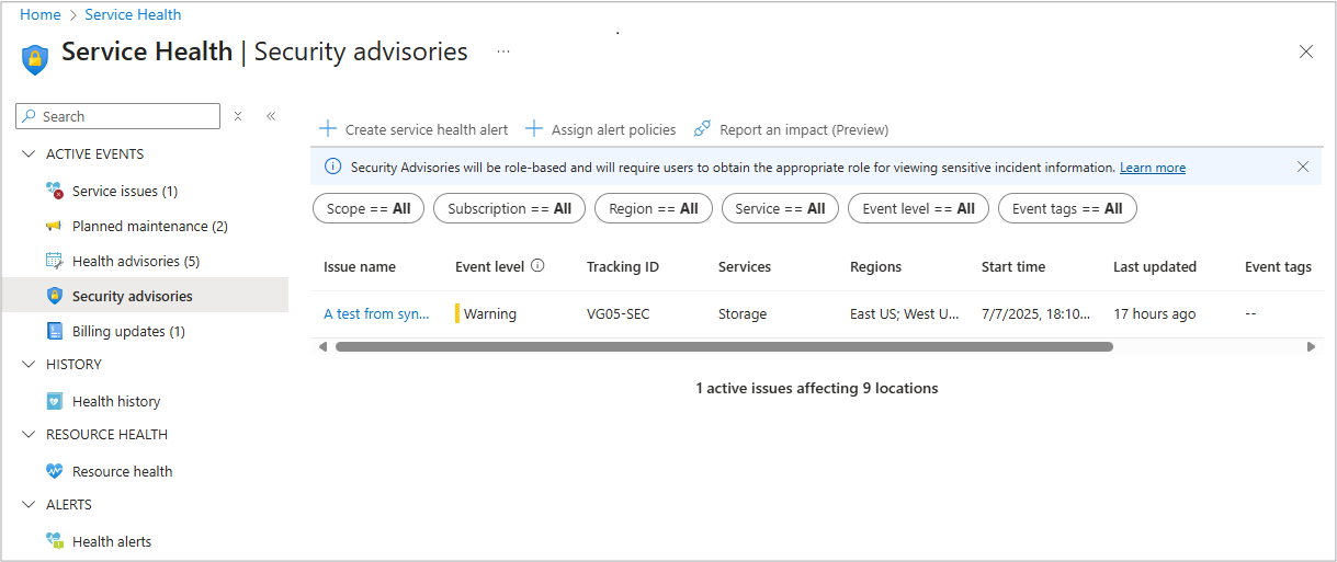 - Users with standard Azure Service Health RBAC permissions.
